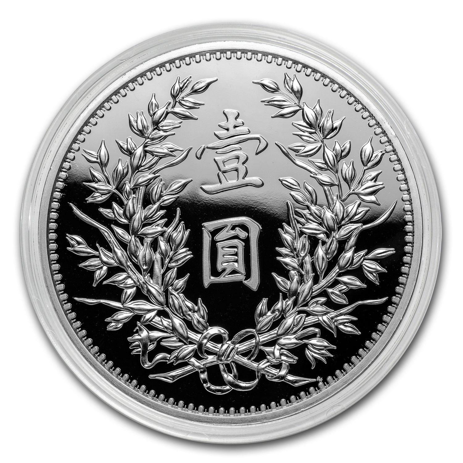 A dragon was featured on the obverse of the Japanese and Korean issues while on the dragon was featured on the reverse of Chinese issues. These dragon dollars were all originally inspired by the Silver Spanish dollar which following its introduction into the region in the 16th Century had set the standard for a de facto common currency for trade in the Far East, this specification being a weight of 27.22 grams and a fineness of .900; the coin thus contained 24.5 g (0.7876 troy oz) of Silver.