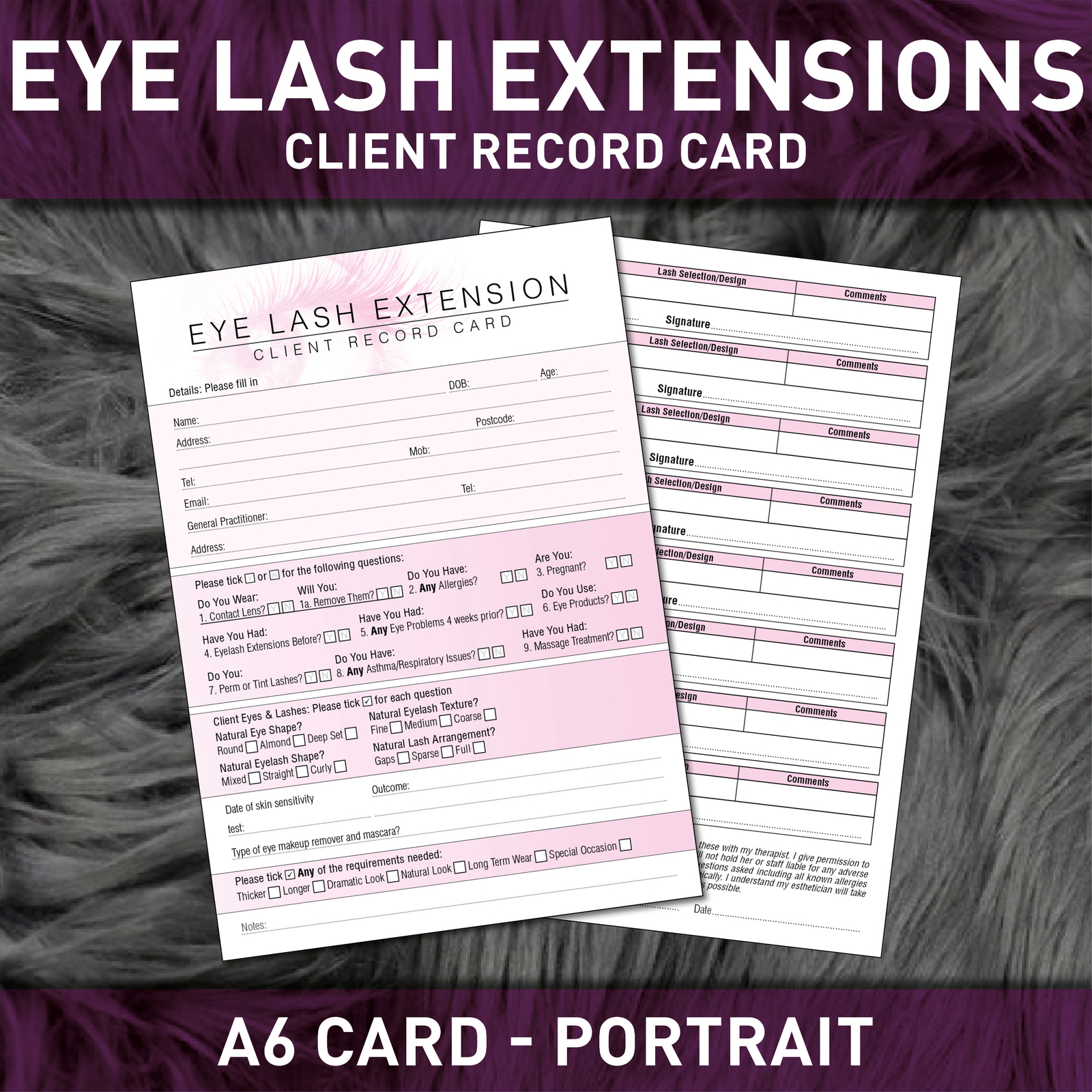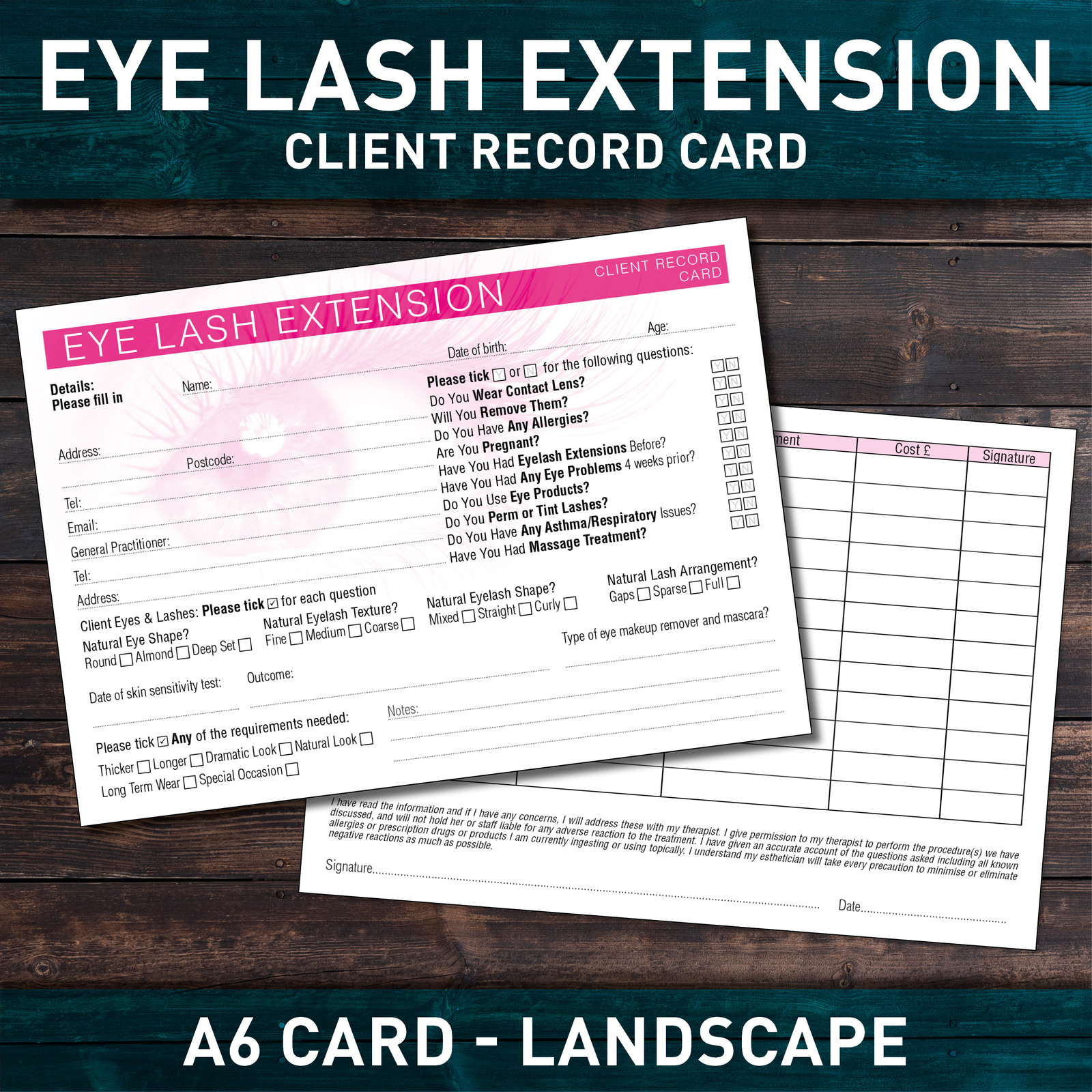 Eyelash Extension Client Record Card Treatment Consultation Lash PREMIUM A5 x50