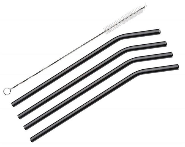 These eco-friendly Cilio Black Glass Straws with Cleaner lets you help save our planet as you sip your favorite beverages. Add a touch of elegance to your cocktails, smoothies or sodas. Made of boroscillicate glass, these straws are reusable, so no more throwing plastic into the landfill. Each set comes with a cleaning brush to keep your straws drink ready. Measures 9" l.