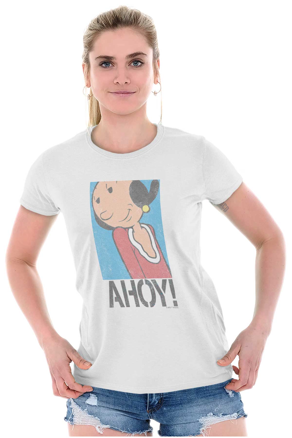 He's Popeye the Sailor Man! He eats spinach, sets sail on his ship, and gah-gah-gah's everywhere. If you are aware that Popeye the Sailor Man is the only cartoon that you know back and front, this Ladies T Shirt is the perfect option for you. From his friends Bluto and Wimpy to his family Olive Oyl and Sweet Pea, you can show that you've laughed, cried, and enjoyed this cartoon for years with this Ladies T Shirt. Don't forget to eat your spinach!