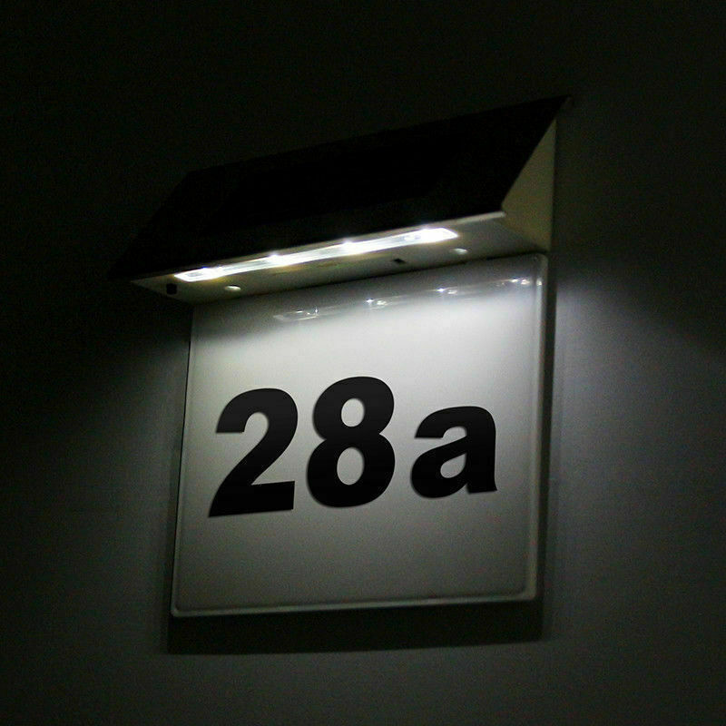 Solar Powered House Doorplate Sign Plaque Number LED Wall Light Up Lamp Outdoor