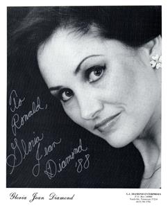 Description A really great 8x10 photo that has been autographed very nicely by Gloria Jean Diamond. Photo is in excellent condition with no damage. This comes with a COA with a Lifetime guarantee of Authenticity.