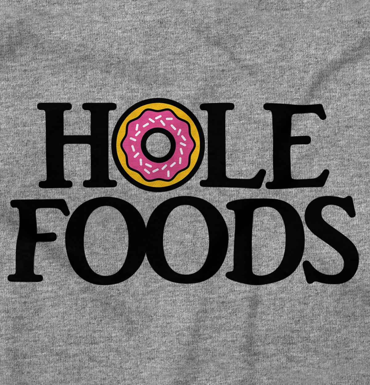 You and I both know we love Hole Foods. Nothing is better or cheaper for the family. Nothing tastes better and nothing is cooler. Than a good old fashioned hole food. And of course we mean donuts. This T Shirt is a funny reminder that healthy food could be taken a lot more weirdly and in the wrong direction. Travel to the supermarket and grab some donuts with this T Shirt. Make some folks laugh with this hilariously punny T Shirt and show it to the world. This is the perfect thing to wear when you want to grab some hole foods.
