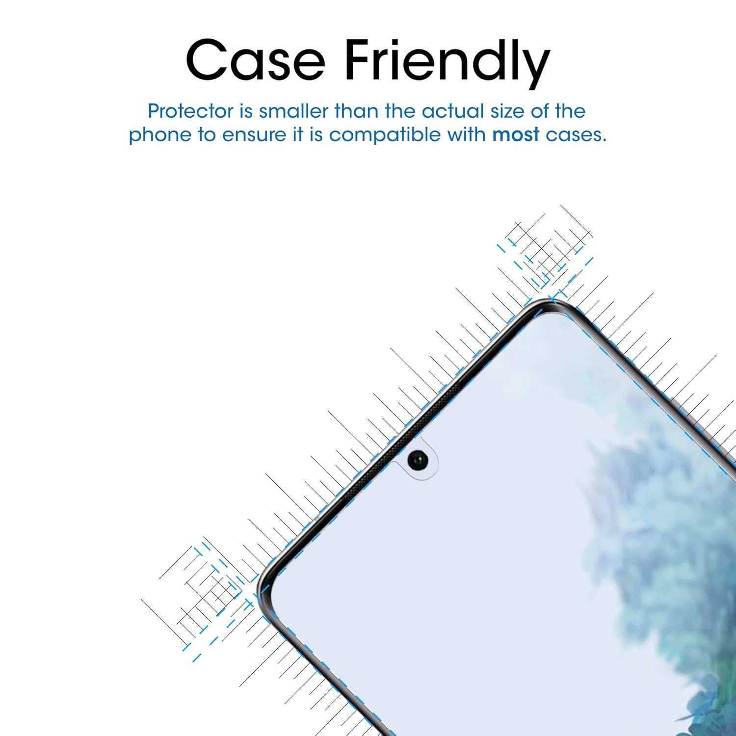 amFilm Ultra Glass screen protectors are made from superior quality tempered glass, and specifically designed to fit your Samsung Galaxy S20. These glass protectors provide case friendly coverage as well as an ultra-clear viewing experience with 99.9% screen transparency. They also feature our unique Ultra Glass technology, which offers edge to edge protection while functioning seamlessly with the Ultrasonic Fingerprint Scanner on your device. This is made possible through a UV Gel Installation process in which a UV Light is used to adhere the screen protector to your device (just re-scan your fingerprint after application to ensure a perfect connection). Plus, they are extremely durable with a surface hardness of 9H, which shelters against scratches, chips, drops, and other normal signs of wear. To top it all off, these very resilient screen protectors will not interfere with the screen sensitivity of your Galaxy S20, resulting in an optimal user experience.