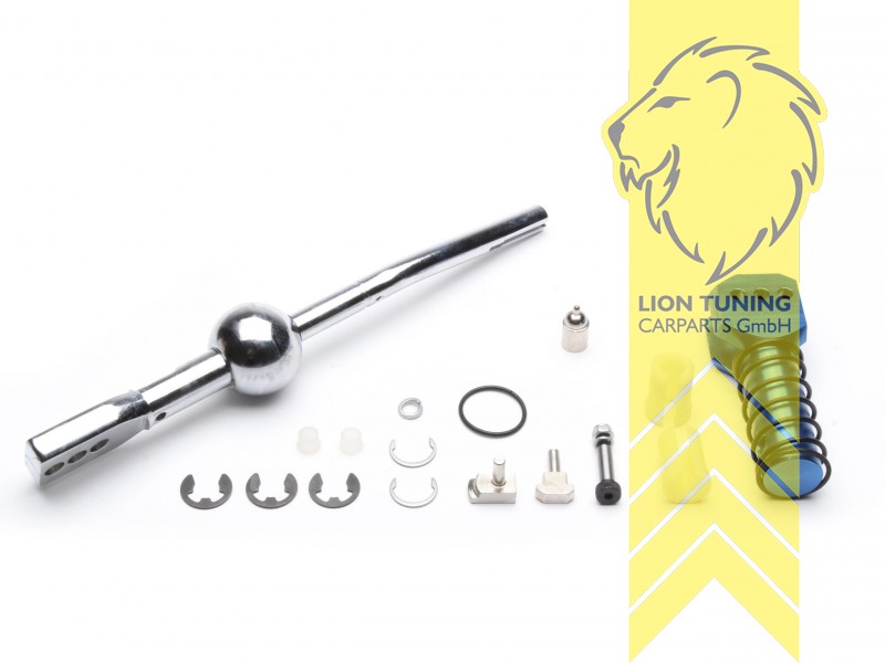 Eine Schaltwegverkürzung sorgt für sportlich knackige und kurze Schaltwege. Somit sind insgesamt schnellere Schaltvorgänge möglich. Zum Lieferumfang gehört alles was auf der Abbildung zu sehen ist.