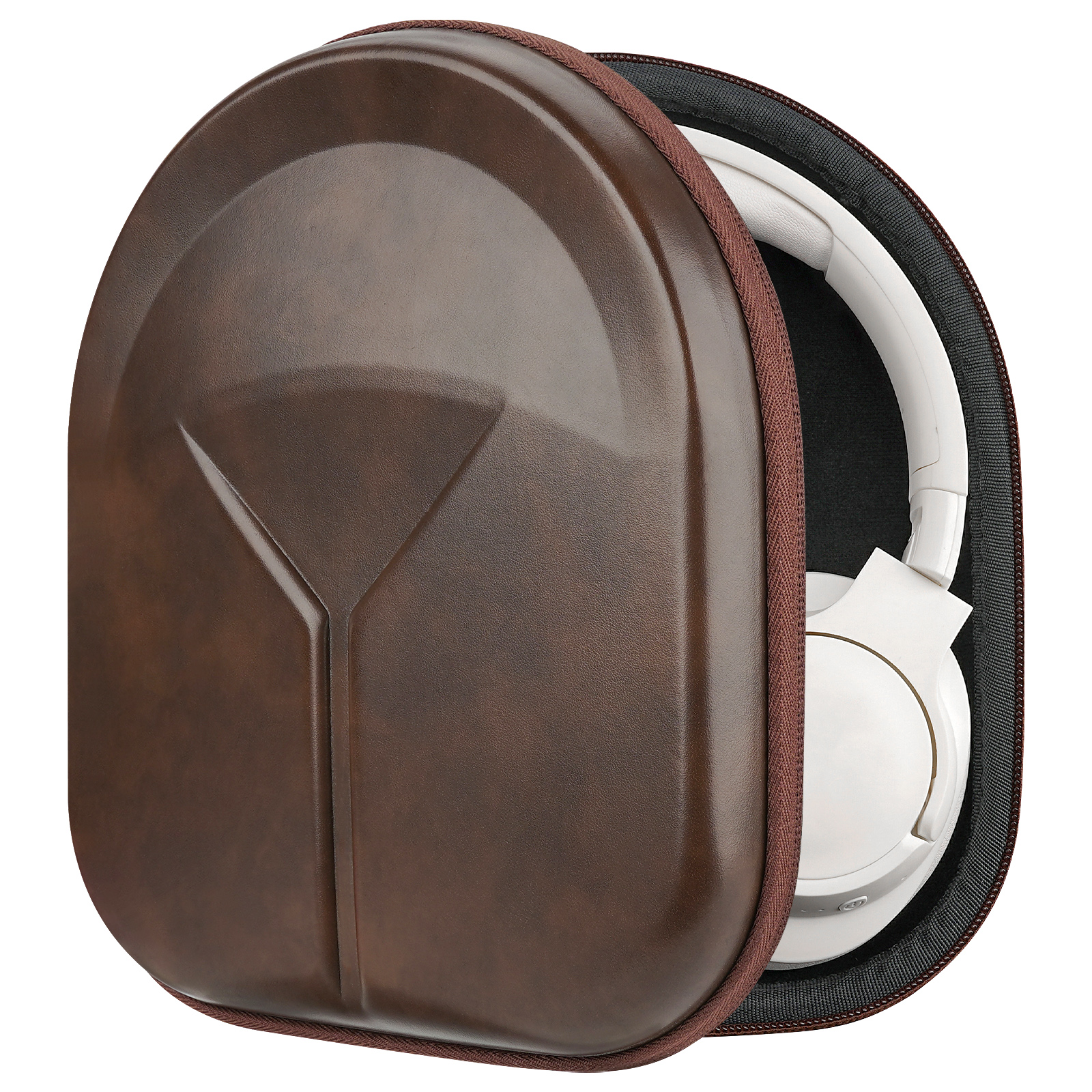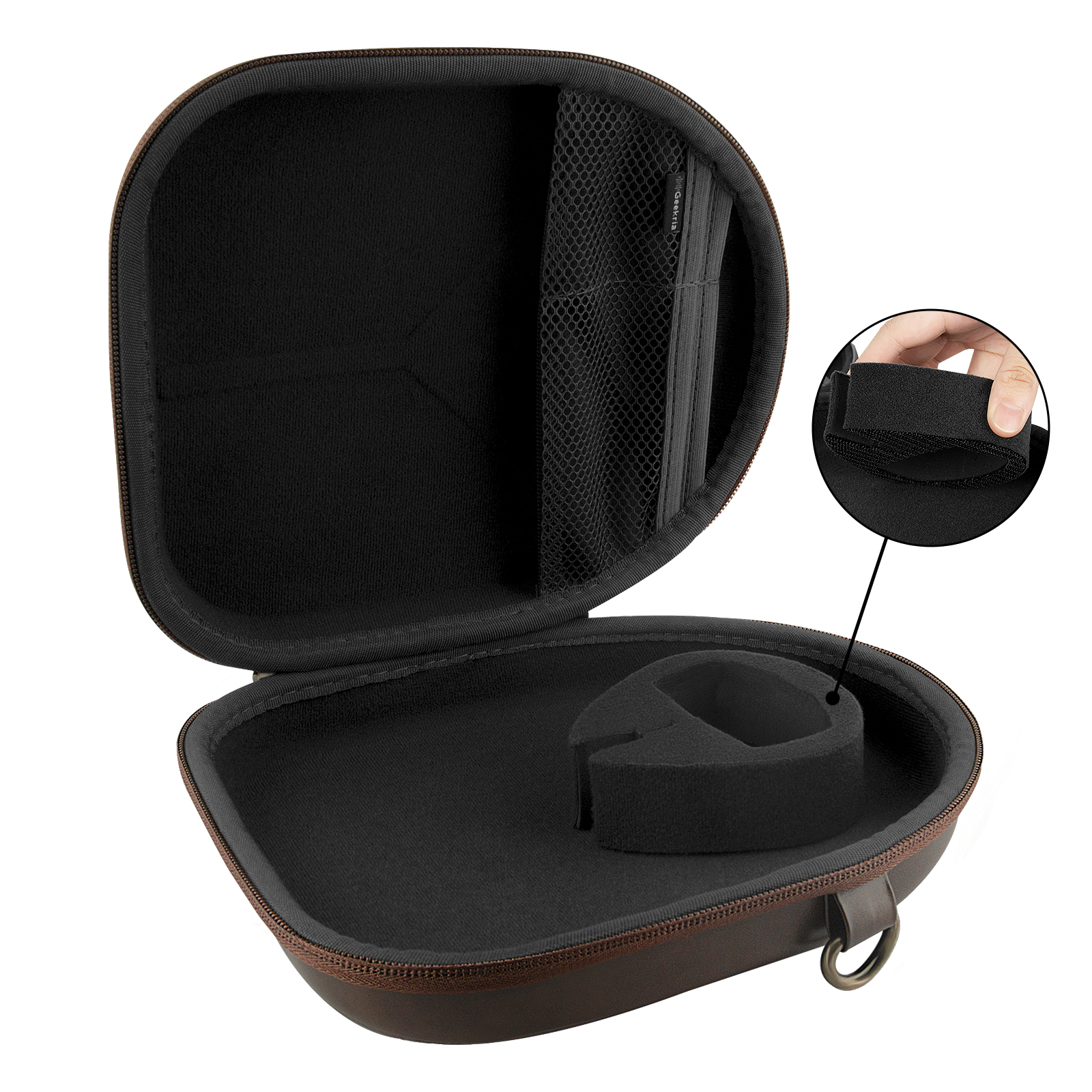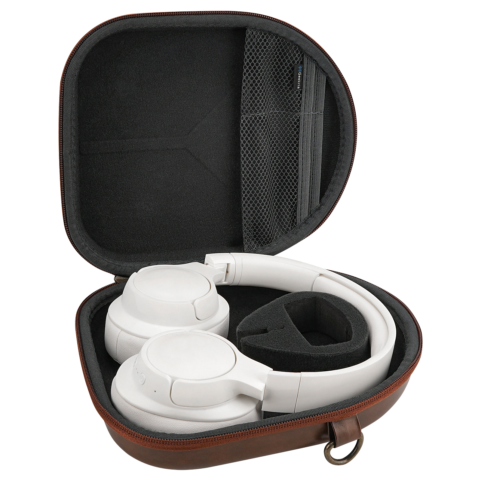 Geekria Shield Headphones Case for On-Ear/Over-Ear Headphones, Replacement Hard Shell Travel Carrying Bag with Cable Storage, Compatible with Soundcore Life Q20i, JBL TourONE M3 (Brown)