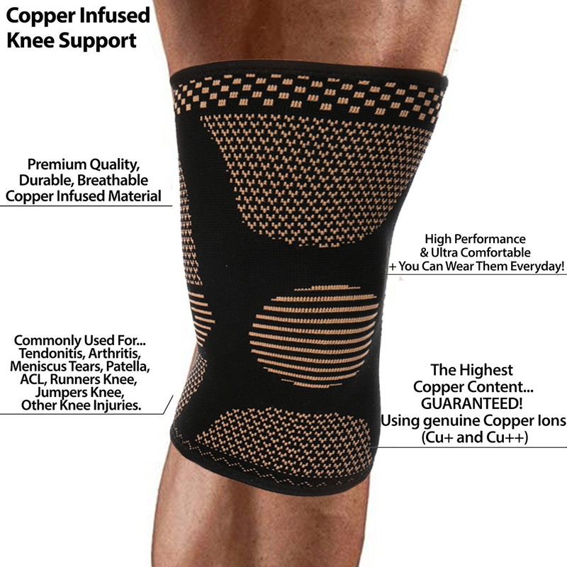 Copper Knee Sleeve Compression Brace Support Stabilizer for Sport Gym Joint Pain