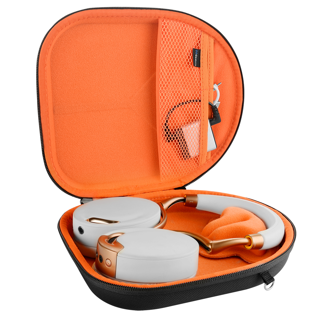 - Internal mesh pocket conveniently stores cables, cords, chargers, AMP, earpads, adapters and other accessories.