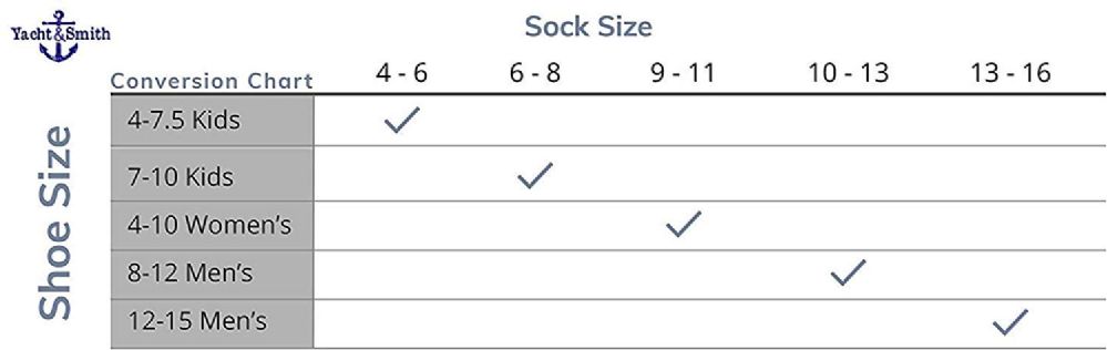 • SOCK SIZE TO SHOE SIZE: (Mens 13-16 fits 12-15) (Mens 10-13 fits 8-13) (Womens 9-11 fits 4-10) (Kids 6-8 fits 7-10) (Kids 4-6 fits 4-7-5)