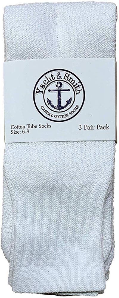 24 Units of Yacht & Smith Wholesale Kids Tube Socks, With Free Shipping (6-8 White) - Boys Crew Sock
