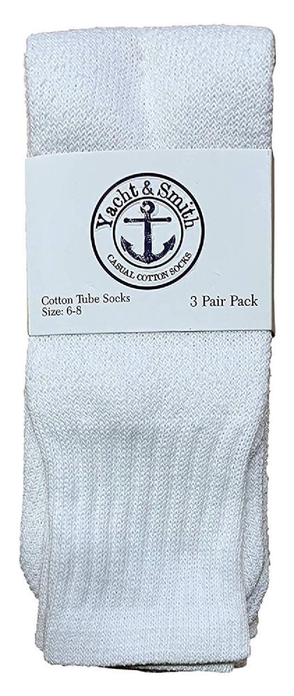 36 Units of Yacht & Smith Wholesale Kids Tube Socks, With Free Shipping (6-8 White) - Boys Crew Sock