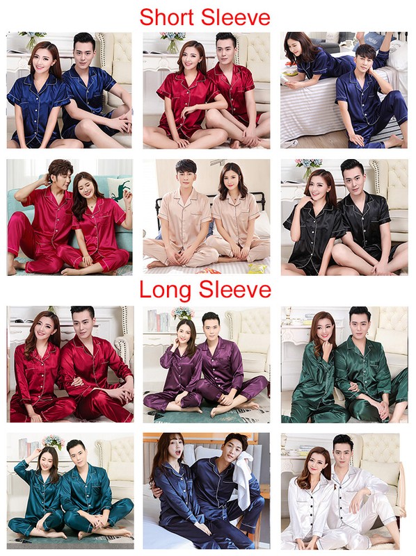 Luxury Satin Silk Pajamas Set Couple Sleepwear Family Pijama Lover Nightwear PJS