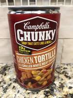 When you're craving a hearty soup that's packed with a fiesta full of flavor, look no further than Campbell's Chunky Tortilla Soup with Grilled White Meat Chicken. For this ready to eat soup, we blend grilled white meat chicken without antibiotics with your favorite Mexican ingredients-rice, black beans, corn, tomatoes, a trio of peppers (red, green chili, jalapeno) and tortilla chips. The end result is so bold and satisfying, it’ll combat your hunger and fuel your everyday hustle. Campbell's Chunky Tortilla Soup with Grilled White Meat Chicken-Soup That Eats Like a Meal. When you need food that works as hard as you do, grab Campbell's Chunky soups. Our big flavor, big pieces and bold ingredients will help you fight back when NFL-sized hunger hits. Available in hearty varieties and tastes that don’t stop, Campbell's Chunky soups fill you up and fuel your everyday hustle.