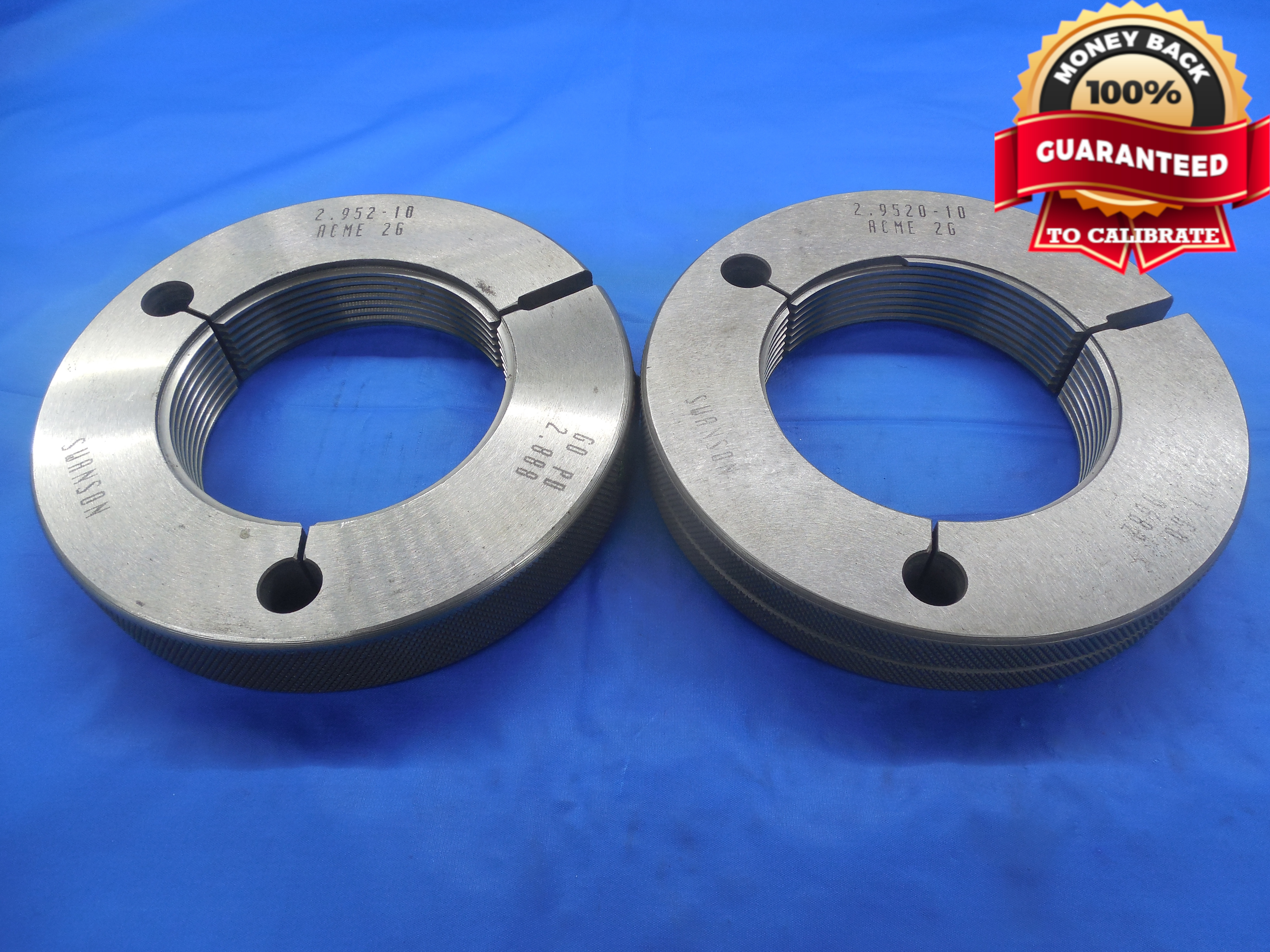 2.952 10 NA 2G ACME THREAD RING GAGES 2.9520 GO NO GO P.D.'S = 2.8880 & 2.8682