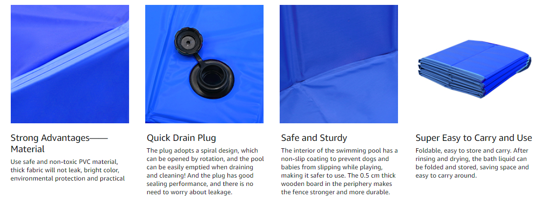 【Featured with screw seal in its side】 --- This pet swing pools is watertight, easy drainage.Since the draining cap is very secure and you not need to worry about leak case happening.