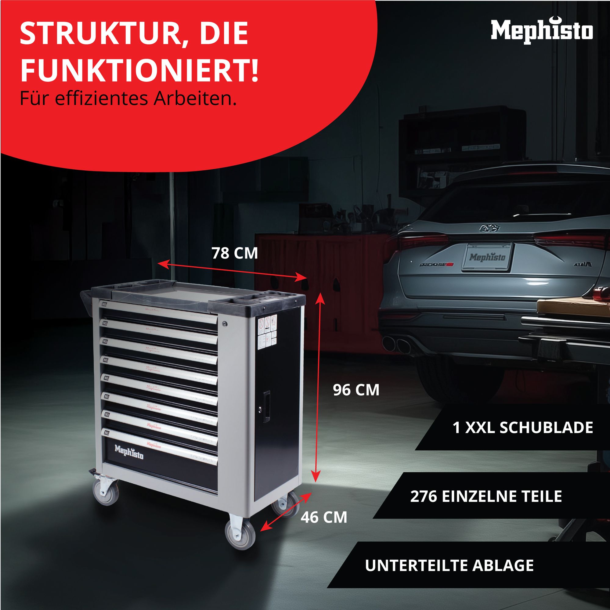 Der Premium XXL-Werkzeugwagen von Mephisto-Tools überzeugt durch erstklassige Ausstattung, robuste Materialien und durchdachtes Design. Mit seinen 7/8 Schubfächern bietet er eine ideale Kombination aus Funktionalität, Stabilität und Stil – und das zum besten Preis. Erfahren Sie mehr über die herausragenden Eigenschaften dieses Werkzeugwagens.