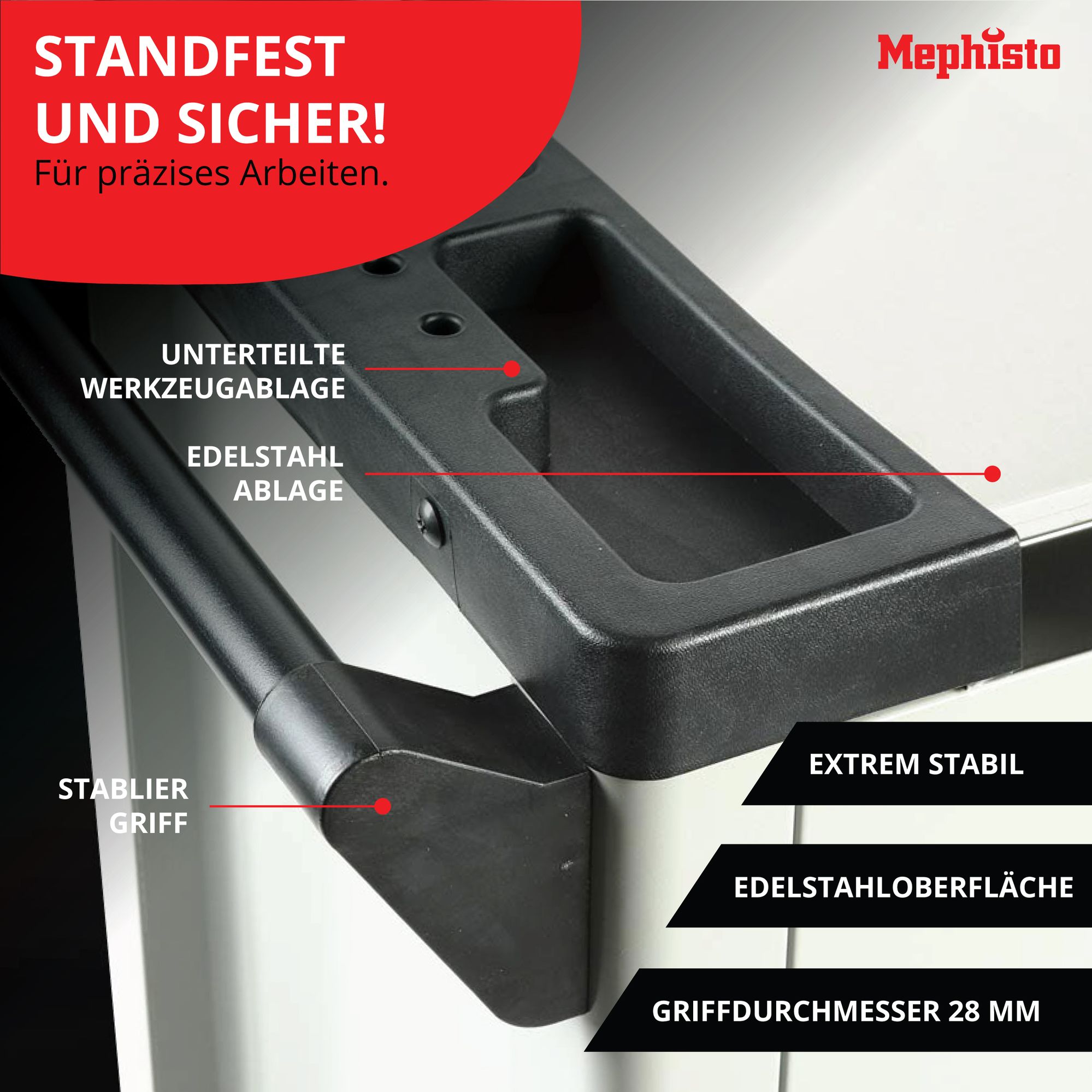 Der Mephisto-Tools Werkzeugwagen bietet reichlich Stauraum für Werkzeuge und Zubehör.