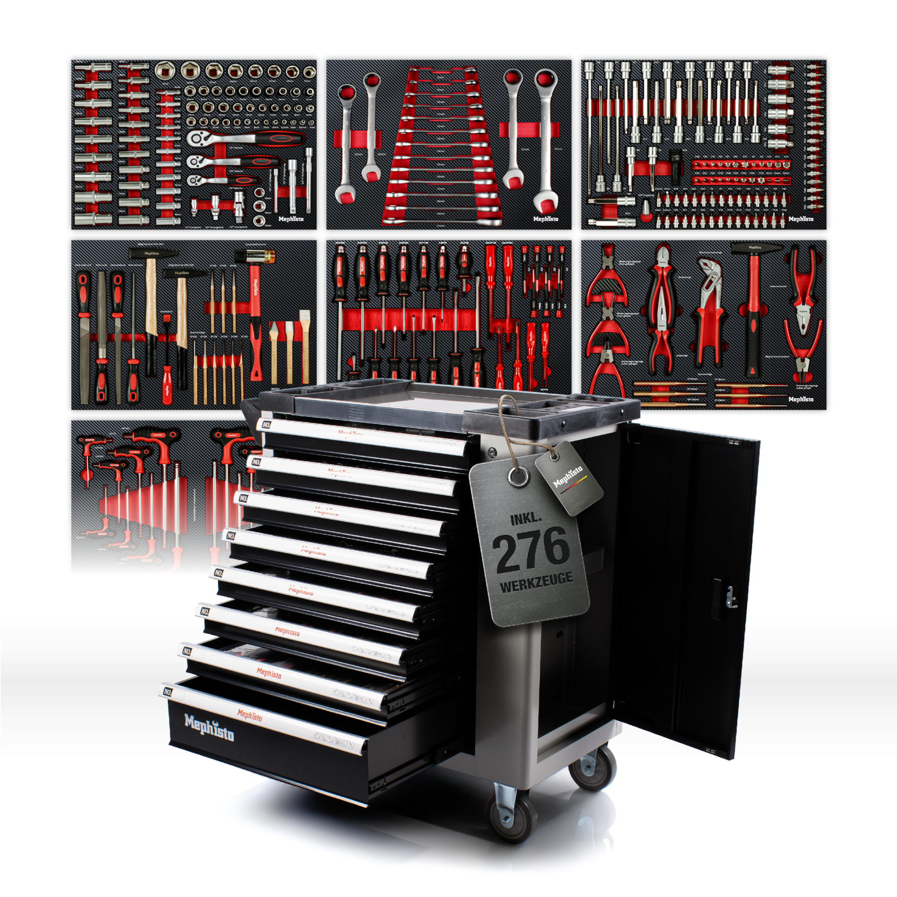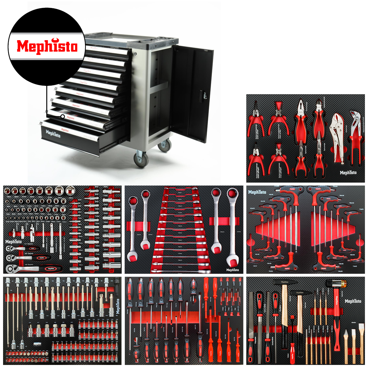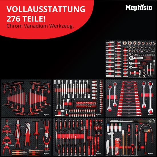 Werkzeugwagen XXL Premium von Mephisto-Tools 7/8 Schubfächern mit Werkzeug: Die beste Ausstattung zum besten Preis