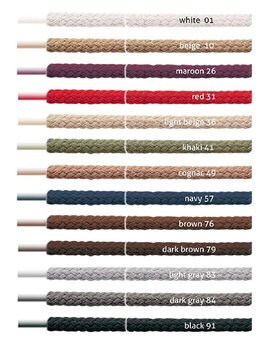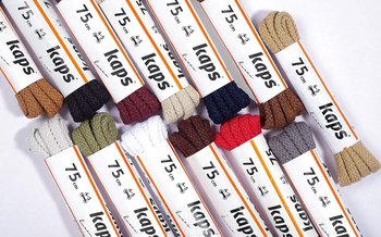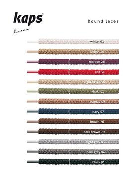 Kaps Round Laces. Shoe and boot laces for casual everyday footwear. Various colours and sizes. Chose the one you want from the list. 1 pack contains a pair of laces. The laces have approximately 3-4 mm diameter. Manufactured in Europe. Made of quality and durable 100% cotton.