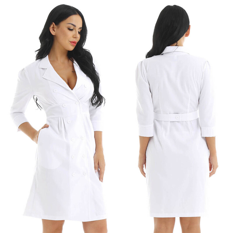Womens medical nurse doctor cosplay costume uniform dress.