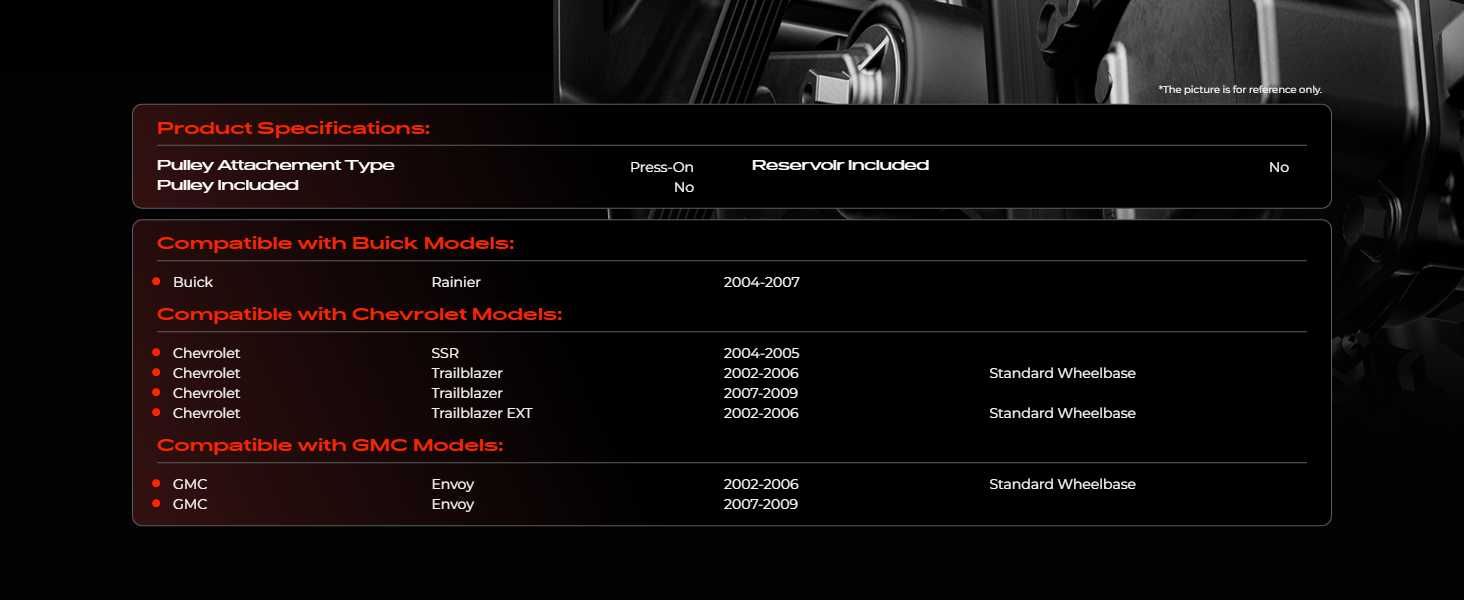 New Power Steering Pump for Buick Chevy SSR GMC Envoy Isuzu Saab 9-7x Bravada