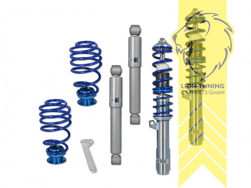 Unsere JOM Gewindefahrwerke sind ein Highlight im Preis/Leistungsverhältnis. Durch die Höhenverstellung kann das Fahrzeug auf die verschiedensten Streckenansprüche individuell eingestellt werden. Zudem erlaubt es die perfekte Abstimmung auf die jeweils gewünschte Rad-Reifenkombination und die gewünschte Tiefe des Fahrzeuges. Auch z.B. bei einem Wechsel der Felgengröße, oder der Montage von Winterreifen, kann das Fahrzeug jederzeit optisch auf die neuen Ansprüche eingestellt werden. Die vorhandene Vorspannfeder erlaubt auch bei extremen Tieferlegungen genügend Vorspannung und ausreichenden Restfederweg. Alle Fahrwerke sind im TÜV geprüften Bereich höhenverstellbar. Darüber hinaus verfügen die Gewindefahrwerke über genügend Restgewinde, um das Fahrzeug im Motorsport-Bereich oder für Show-Zwecke noch tiefer zu legen, als vom TÜV zugelassen ist. Ein Verstellschlüssel ist selbstverständlich im Lieferumfang enthalten.- individuell höhenverstellbar