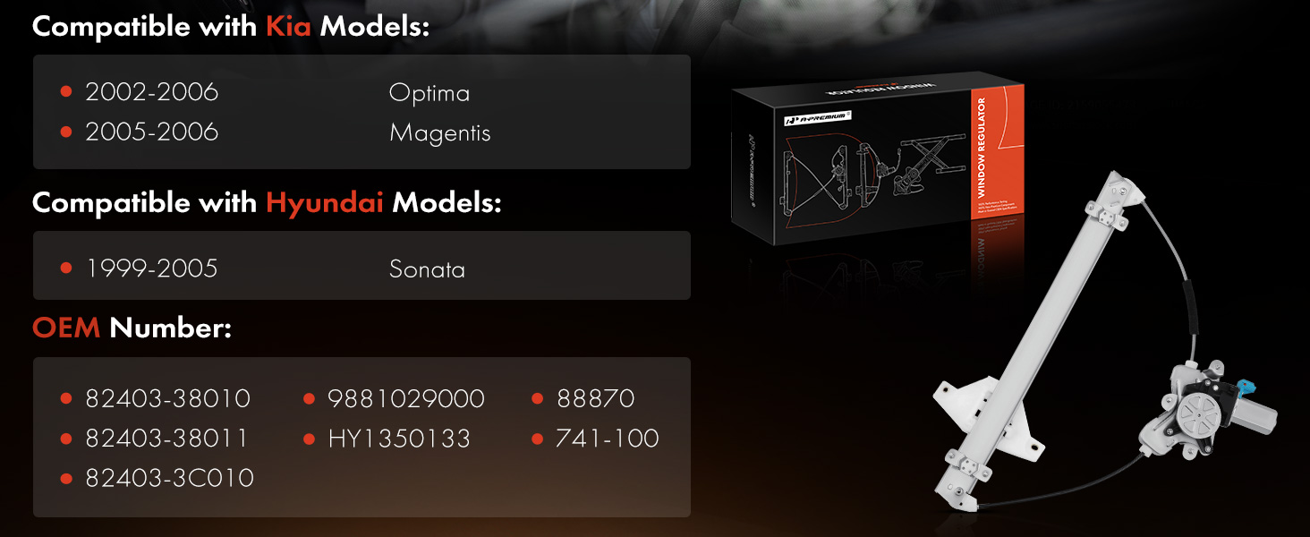 Front Left Window Regulator w/Motor for Kia Optima Magentis Hyundai Sonata 99-06
