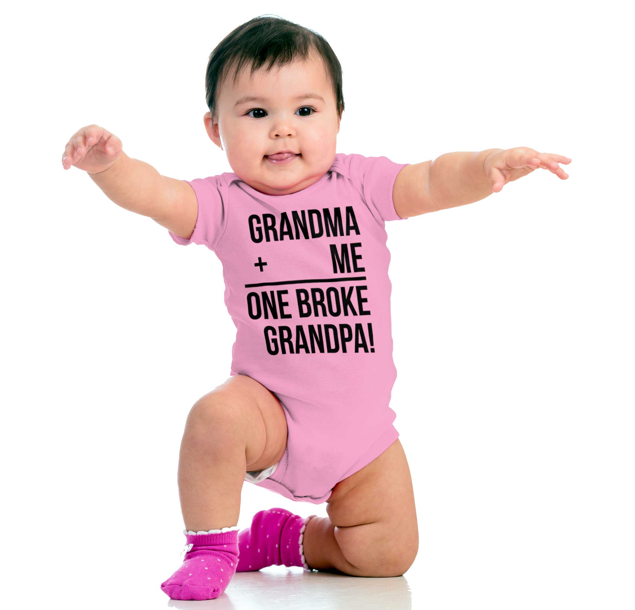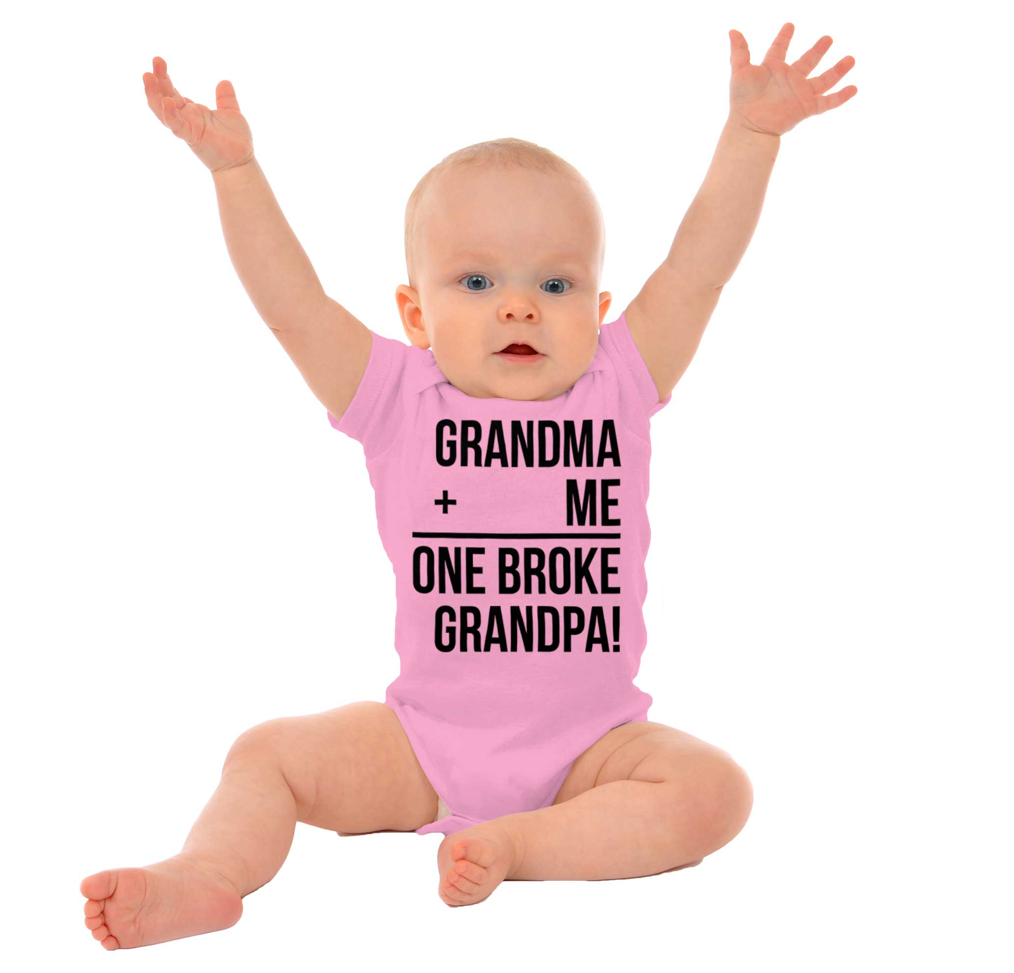 It's simple arithmetic really. Just carry the 1 and there you go. If you add grandma plus you, the you get one broke grandpa! This funny grandparents Romper Bodysuit is perfect for those grand kids who just bite off a little more than they can chew. The grand kid who wants chocolate and ice cream and pancakes and candy. And then they want to go on the trampoline, the amusement park, and the next place. If you love grandma and grandpa and wanna show off the fact that you can break a bank like a pro - then this funny grandma grandpa Romper Bodysuit is yours.