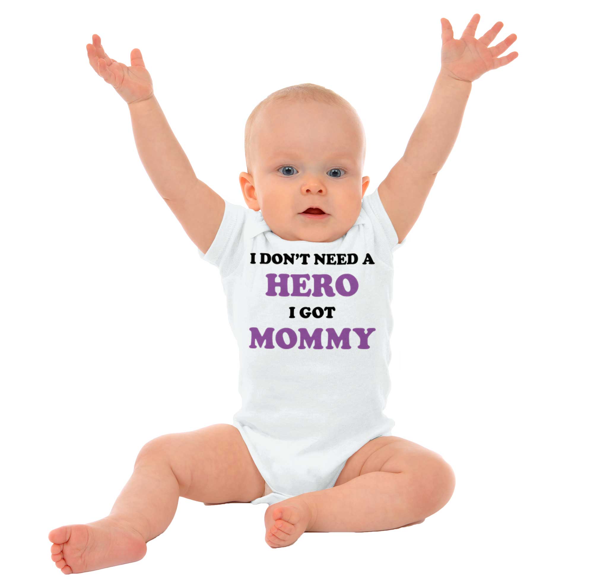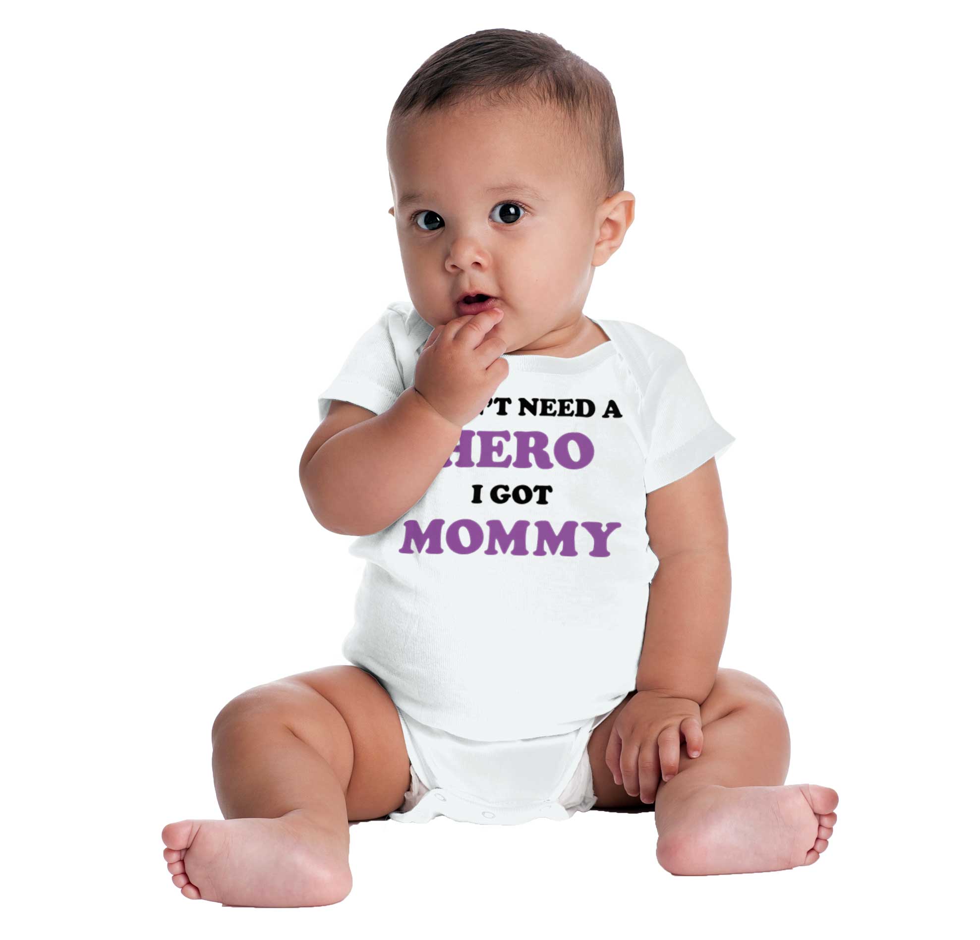 I don't need a hero, I got mommy! My mom is the strongest superhero around and she's awesome. Her superpower is that she cares about me and makes sure I'm safe. She feeds me and clothes me. I'm her sidekick and together we fight crime! We're the best team that there is and she's the best mommy that there is. This Romper Bodysuit shows that, you see!