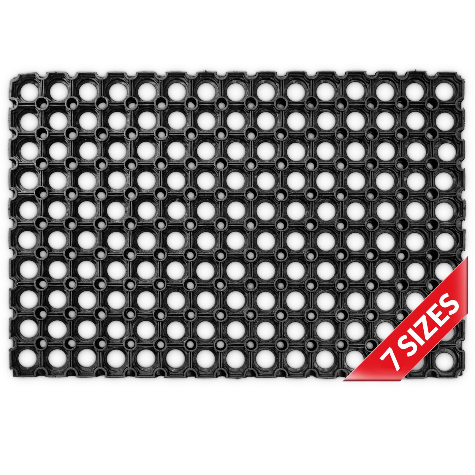 Zeitloses, funktionales Design vereint sich in dieser Ringgummimatte mit starken und vielfältigen Funktionalitäten. Die Ringgummimatte ist sowohl als Sauberlaufmatte und Antirutschmatte geeignet sowie als Fußabstreifer oder Türmatte. Für stark genutzte Eingangsbereiche und Übergangszonen eignet sie sich besonders gut, da sie extrem robust ist und auch Schmutz- oder Nässeeintrag verkraftet. Ihre offene Ringstruktur nimmt beim Drüberlaufen Feuchtigkeit und Schmutz auf und leitet ihn nach unten weg, damit wird Pfützenbildung auf der Fußmatte verhindert. Geeignet ist die Fußmatte aus Ringgummi auch für Outdooranwendungen, beispielsweise auf der Terrasse, vor der Haustür, vor dem Nebeneingang oder sogar im Stall. Trittschalldämpfung, langlebig und pflegeleicht, einfach mit Wasser und Seife reinigen und wieder auslegen!