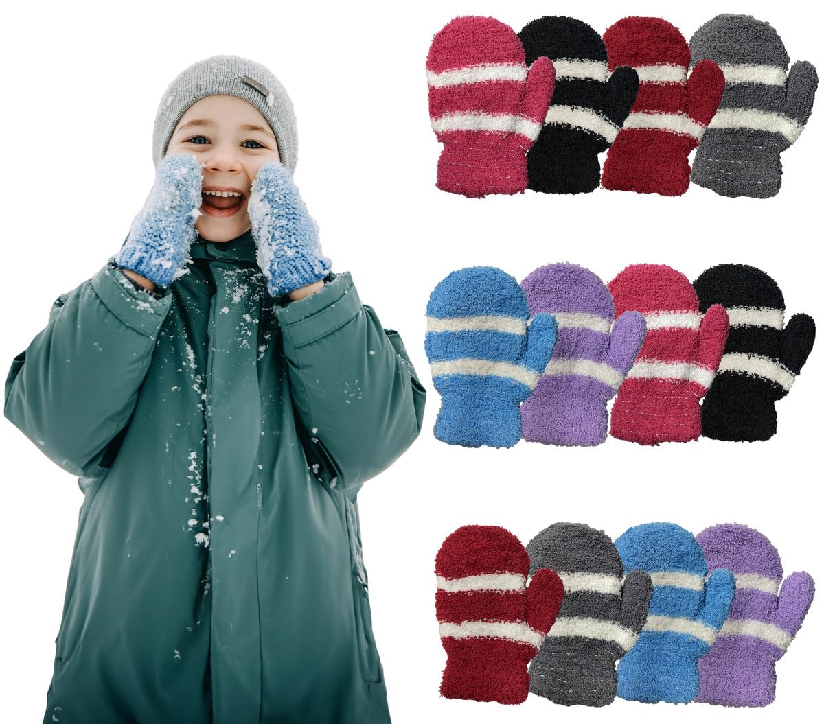 • 12 PAIRS OF SOLID ASSORTED BULK WINTER MITTENS FOR KIDS GLOVES: Unisex Warm fuzzy knit fabric provides warmth and flexibility so kids can play outside for hours. Stock up on bulk mittens for kids so you have extra pairs un your coat closet. Great for families with lots of toddlers and school age children!