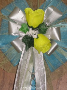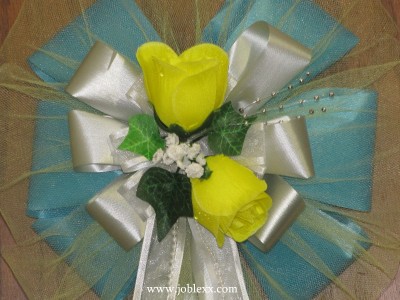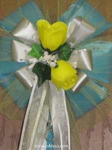6 YELLOW ROSES SILVER/TURQUOISE flora Ribbon Pew Bows for Occasions