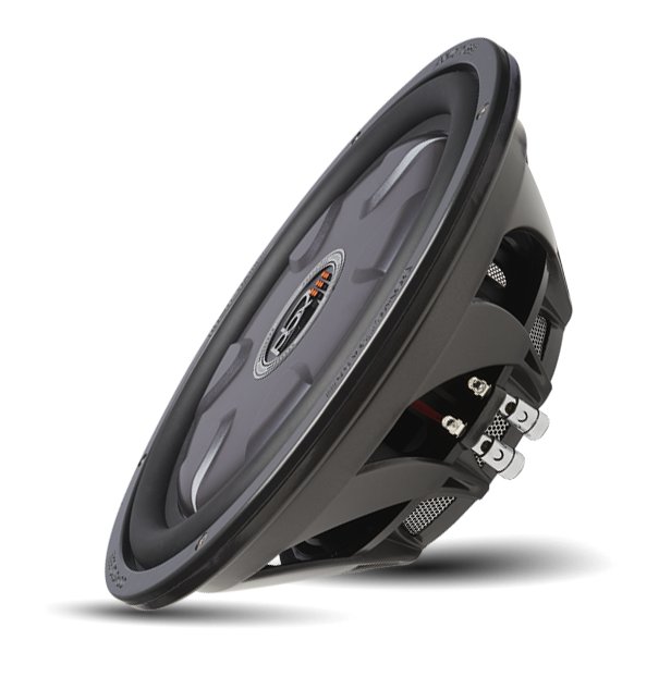 Universal PBX™ 12" Shallow Mount DVC Subwoofer by PowerBass®. Those seeking a shallow woofer that can handle more power in a tight space will find that new XL-Shallow subwoofers are just the ticket. The proprietary one piece cone gives accurate and efficient bass to a system without taking a whole lot of space. Designed to work best in a small sealed enclosure that will fit in most spaces that a standard woofer won't opens up new possibilities for the most discerning music fan. Using the same turbine style Poly/Glass Fiber basket as standard XL subwoofers this shallower version offers all the features and reliability from the Xtreme family. Boasting a flat injection molded cone and inverted ferrite magnet these drivers come in nearly 2-inches shorter than their standard XL counterparts.