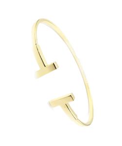 GORGEOUS Thin 18kt Gold Plated Double Open Bar End Tips Cuff Bracelet