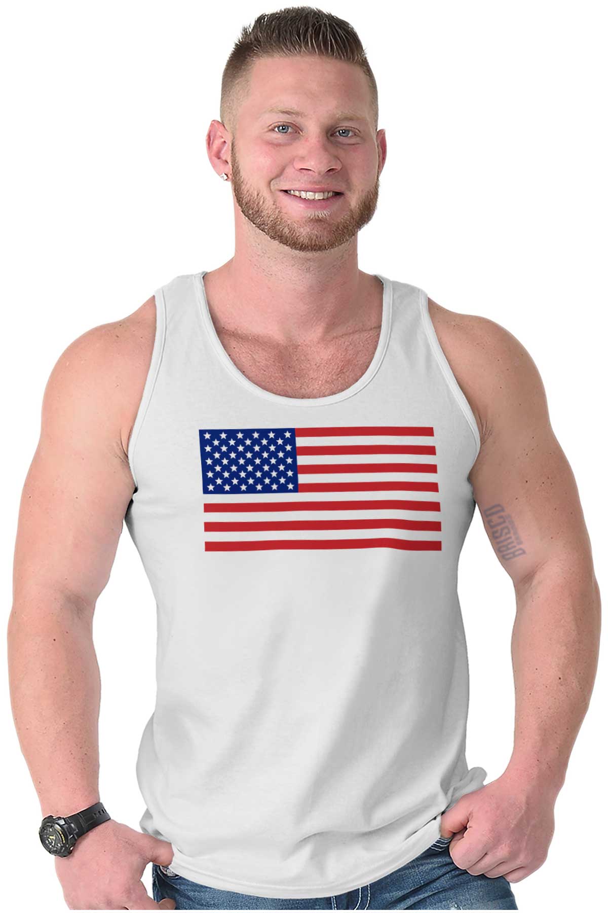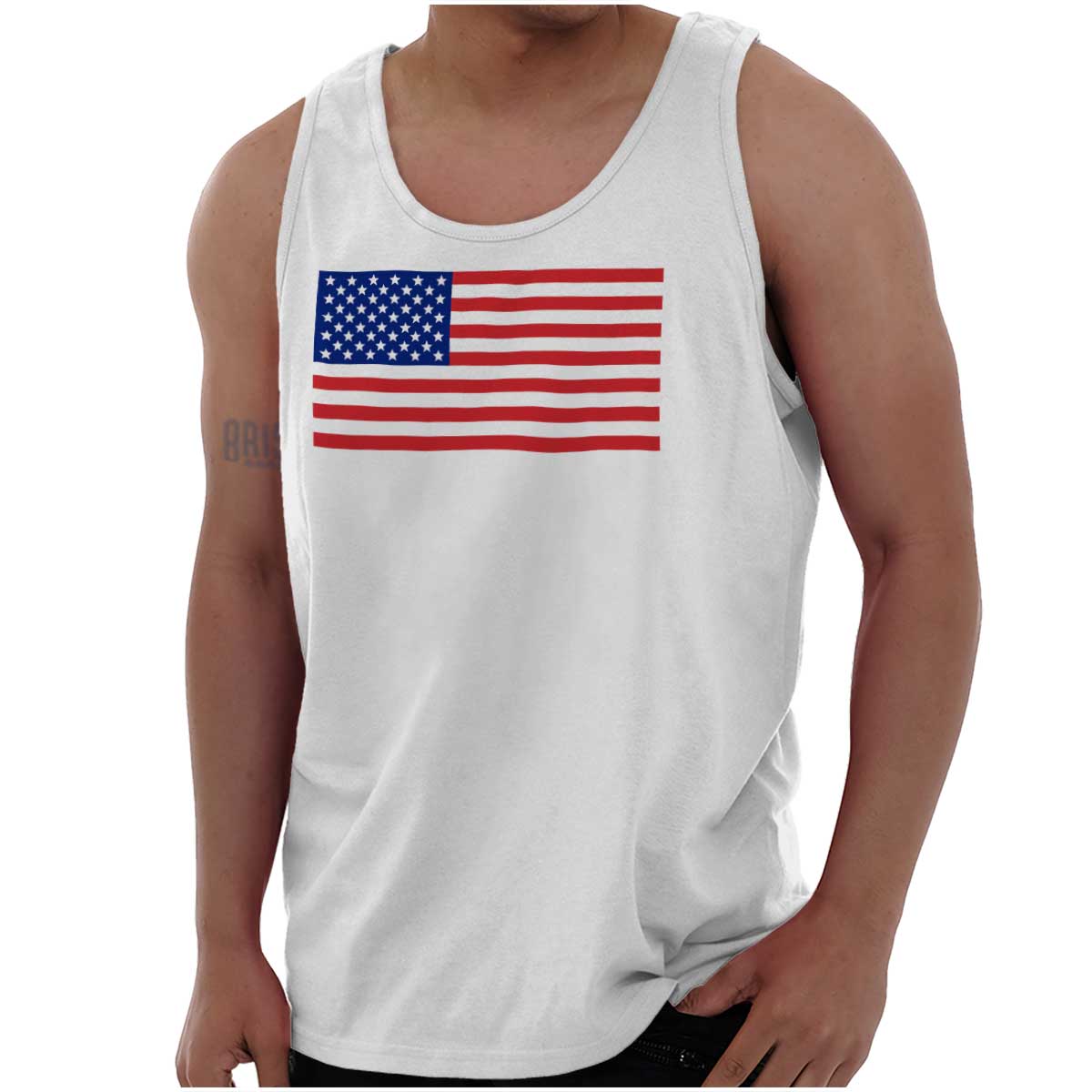 Made in the USA and proud of it. Nope, no cheap materials here. No ripping from the seams. You're constructed by steel. You're made off of the spoils of hundreds of years of victory. You breathe freedom and bleed red, white, and blue. The only time you take off work is President’s day. Well, and Martin Luther King Day. Alright we can’t forget Labor day. And Memorial day weekend is always awesome…man, love MDW. But right, this Tank Top is for bonified Americans! God bless the USA!