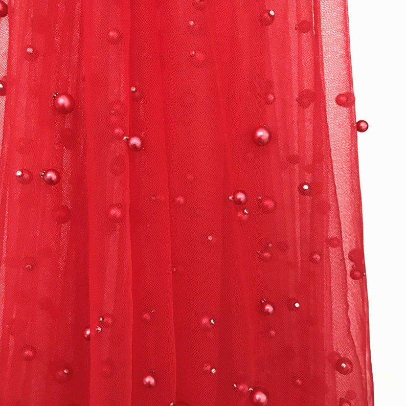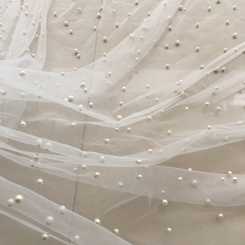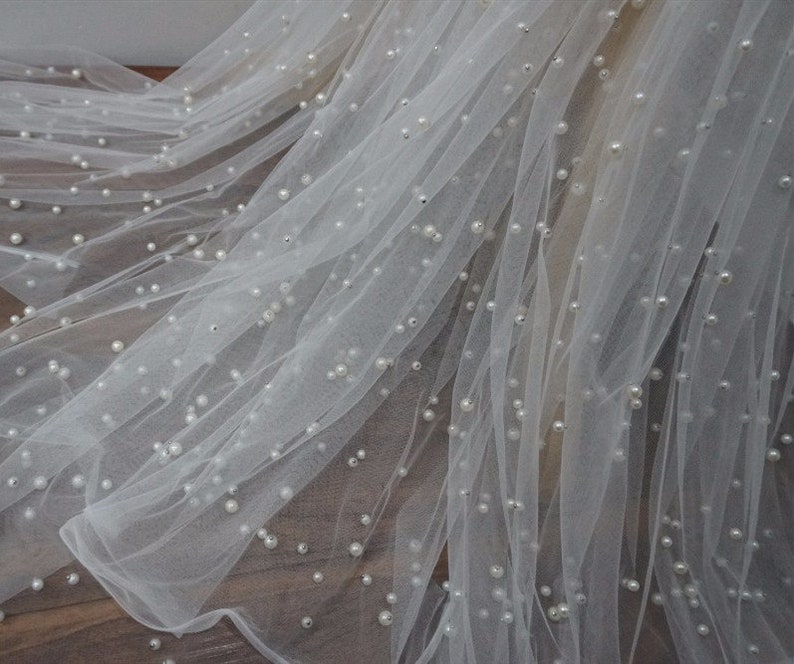 Gorgeous and High quality, Dense pearls beaded lace fabric, Soft Tulle Lace Fabric, ideal for lace top, bridal veil, Wedding decor, Flower Girl Dress, Wedding Dress, Bridesmaid Dress
