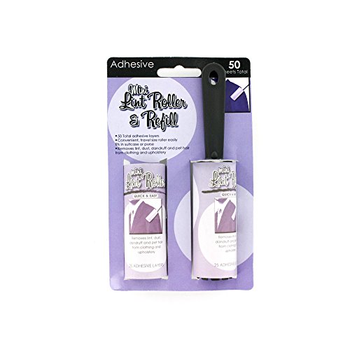 Remove lint, dust, dandruff and pet hair from clothing and upholstery with this handy Mini Lint Roller and Refill with a total of 50 adhesive layers. Convenient, travel size roller easily fits in suitcases or purses. Directions for use are provided on back of packaging. Roller is approximately 5 5/8" in length and has a diameter of 1 1/8". Comes packaged in a hanging panel.