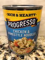 Your classic go-to comfort food, Progresso Rich & Hearty Chicken & Homestyle Noodle Soup is made with all white meat chicken, flavorful noodles and rich broth. This homestyle chicken noodle soup is perfect for moments when you're craving a rich and satisfying meal. With no artificial flavors or colors and low-fat ingredients, you can fully enjoy the goodness of real chicken and noodles. Serve this chicken soup in less than five minutes, either on its own or with freshly made bread for a quick and comforting meal.