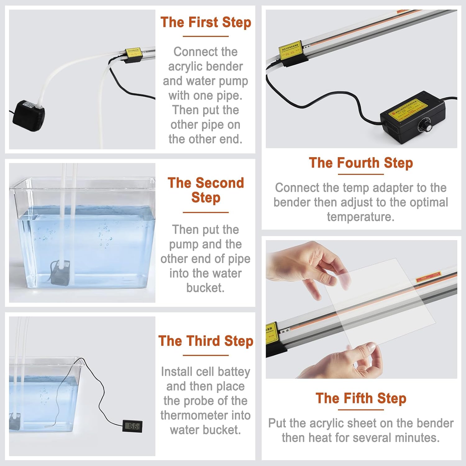 | acrylic bending machine heater is core part of bending machine, it soft the acrylic, you need to bend acrylic by hands. It is space saving, low cost. | acrylic bending machine bends acrylic by electric, with super high precision, but it is expensive relatively. |