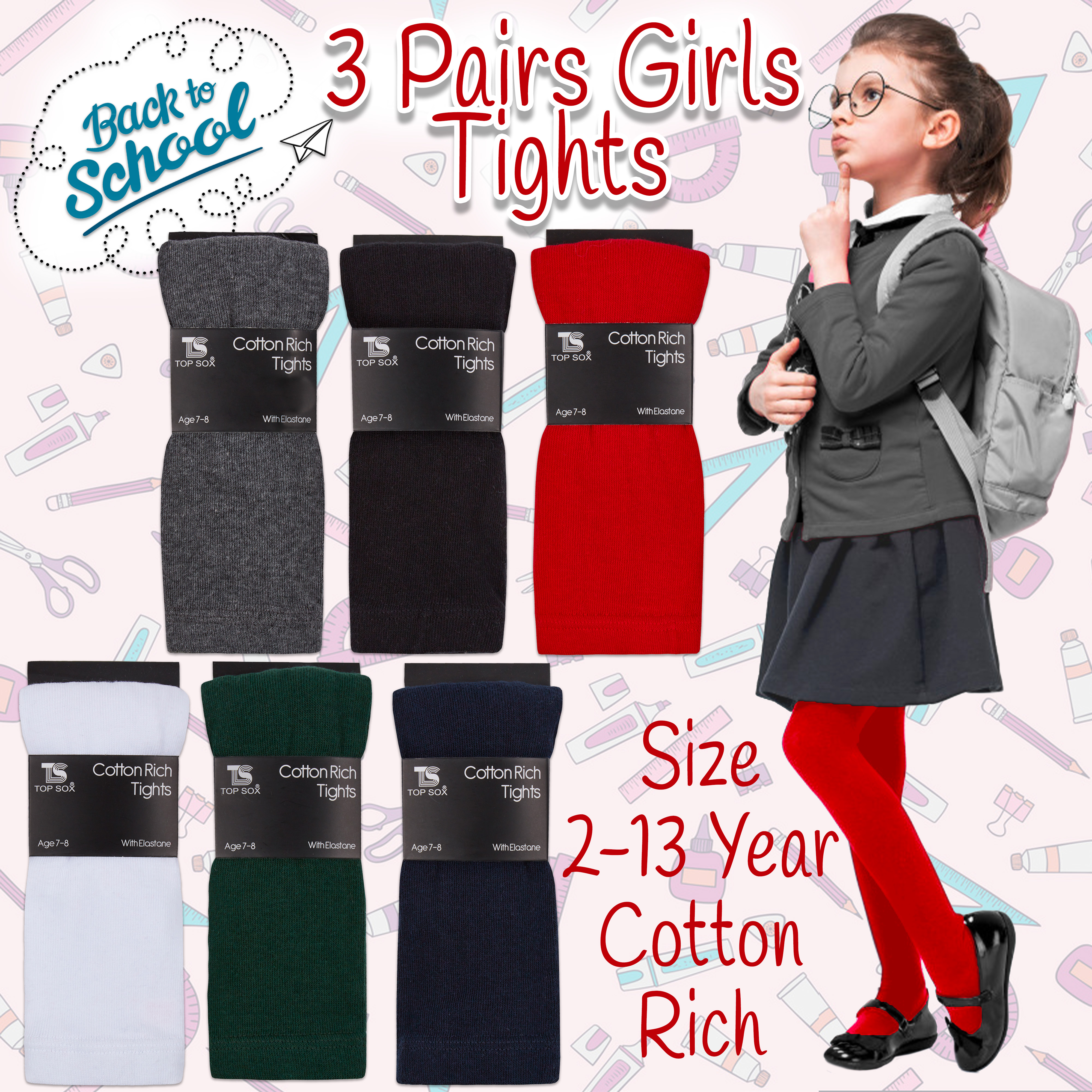 - PLAIN GIRLS TIGHTS - Presenting back to school girl's tights from Top Sox. Available in sizes 2-13 years and 6 colours. These coloured plain tights are perfect for most school uniforms.