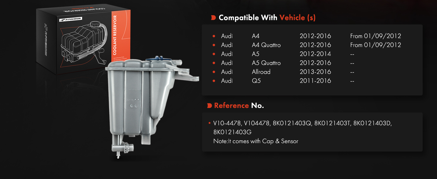 A-Premium Engine Coolant Expansion Tank w/ Cap for Audi A4 A5 Quattro Allroad Q5