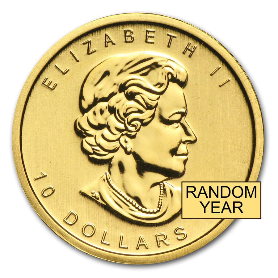 The Gold Canadian Maple Leaf coin remains one of the most popular bullion coins to date, not only for its iconic single maple leaf design, but beauty and high purity as well. Add this outstanding 1/4 oz Random Year Gold Maple Leaf to your cart today.