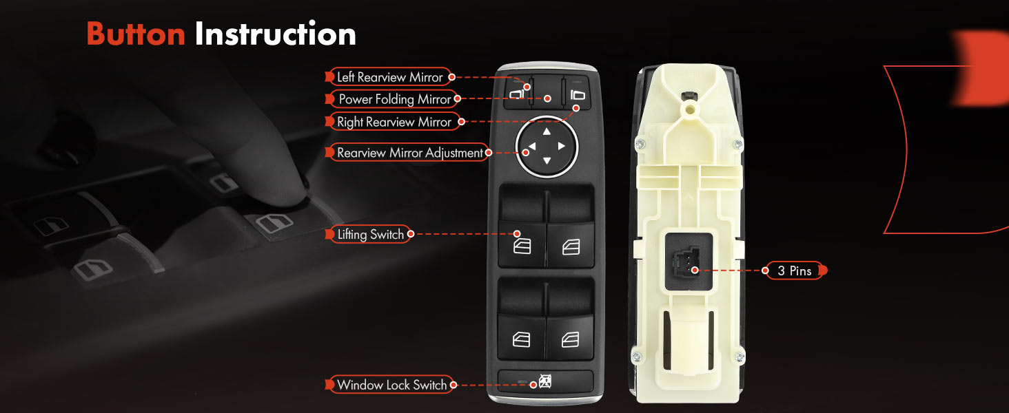 A-Premium Front LH Power Window Switch for Mercedes C230 C250 C300 C350 C63 AMG