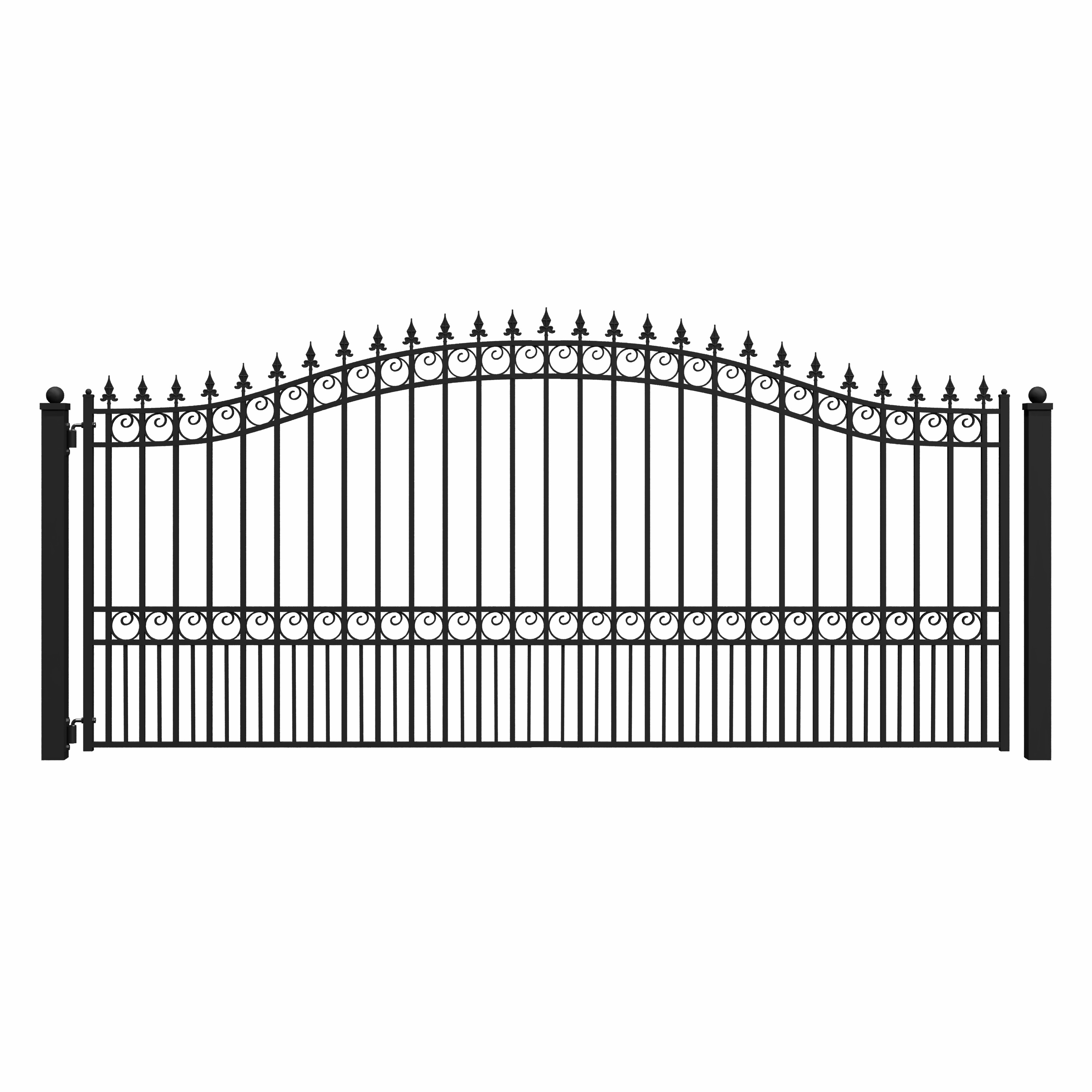 ALEKO High quality 14' x 6' Single Swing Driveway Gate, specially designed for the easiest installation. The Driveway Gate captures the classic magnificence of historic wrought iron gates at an affordable price. We use the Duplex System when to make our gate: Galvanized Steel and Powder Coated Paint. Galvanized Steel is a process that protects the steel from rust and corrosion. The powder coating actually increases the life of galvanized steel. Unlike conventional paints, powder coated paints will not peel, chip or crack. One of the most dramatic changes you can make to the exterior of your home is adding an electronic opening gate that increases home security and enhances the aesthetics of your property. Make this driveway gate into an automatic gate by installing a gate opener that increases home security and enhances the aesthetics of your property. London Style Driveway Gates, London Style Fence panels and Pedestrian Gate compatible and matching. Specification: ALEKO London Style Single Swing Gate Maintenance free, no painting or staining Duplex System (powder paint is applied to galvanized steel) Durable and strong all 4-point welded construction Great combination of strength, corrosion resistance Powder-coated finish helps prevent rust, cracking, peeling, and chipping Protected against rust and weather damage No Welding Required Material: Galvanized steel gate with a powder paint coating Gate Dimensions L X H: 14 ft. x 6 ft. Gate Posts Dimensions: 8L ft. x 3.5W x 3.5H in Gate Warranty: 10 Years Color: Black Included: 2 Gate Panels, 2 Posts, Regular Hinges J-bolt