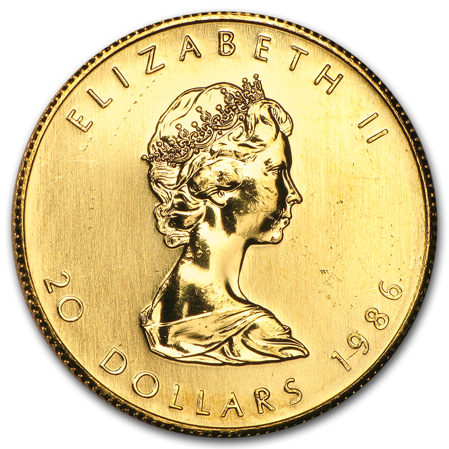 These Gold coins remain one of the most popular bullion coins to date, not only for their iconic single maple leaf design, but beauty and high purity as well. Add this 1986 1/2 oz Gold Maple Leaf to your cart today!