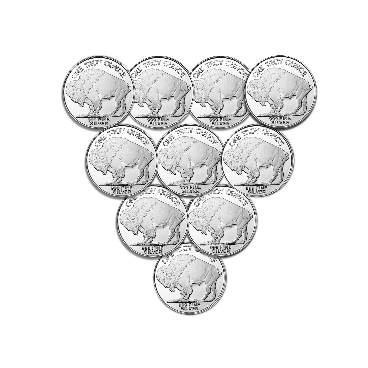 These popular 1 oz Silver Buffalo Rounds feature Native American icons that are rich, proud and embedded in American history. Add this Lot of 10 Silver Buffalo Rounds to your cart today!