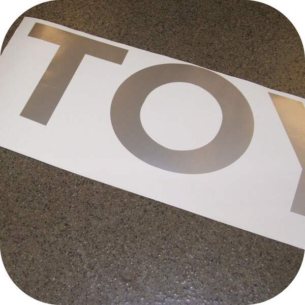 New Toyota Pickup Tailgate Letter Sticker. This is a NEW sticker. This is BLUE. Replaces factory sticker perfectly. If yours is being repainted or just faded, this is the finishing touch to make for a nice looking truck. Sticker letters are roughly 33" x 5".