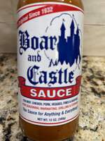 Boar & Castle Sauce in 12 oz. bottle (the one and only original!) Perfect sauce for hamburgers and is a great dip for fries and for fried and broiled veggies. The aromatic, tangy flavor of this sauce is incredible with pork, poultry, ground meat dishes such as meatloaf, and of course, steak.