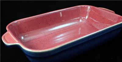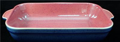 This elegant pattern was produced by Denby from 1992 through 2004 and is now discontinued. It features red, green and blue speckled stoneware.