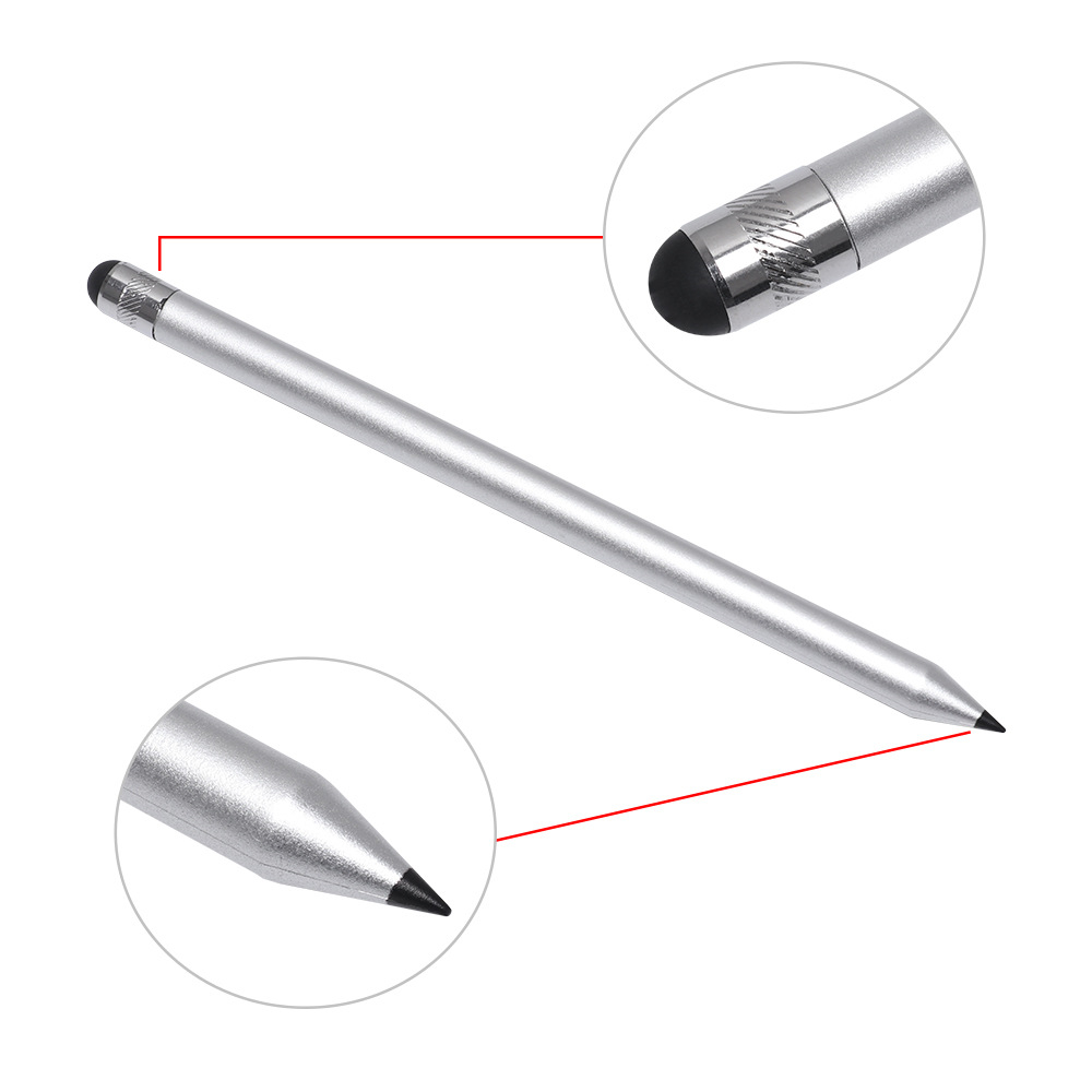 One round rubber end with capacity touch screen function, and the pointed-end with writing function on resistive touchscreen.